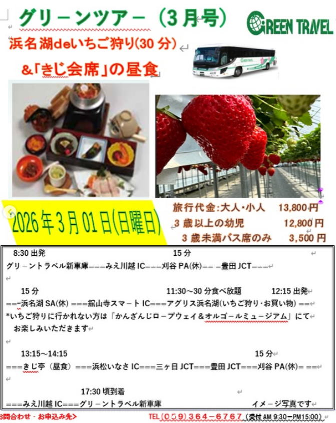 2026/03/1(日) 浜名湖deいちご狩り&「きじ会席」の昼食